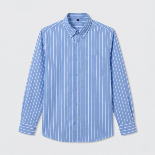 Men Classic Blue White Striped Shirt Full Sleeve